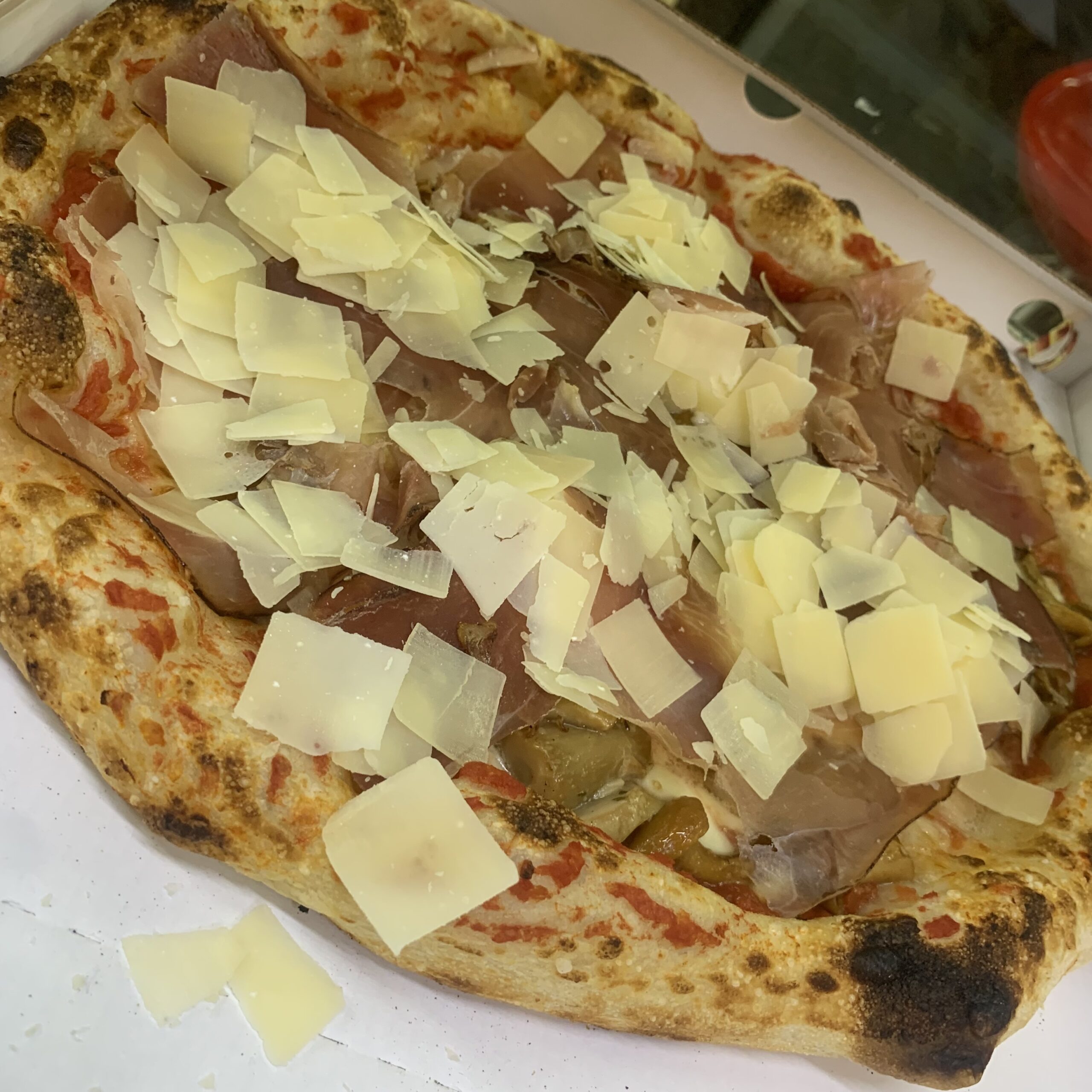 Pomodoro, Mozzarella, Porcini, Chiodini, Speck, Grana A Scaglie